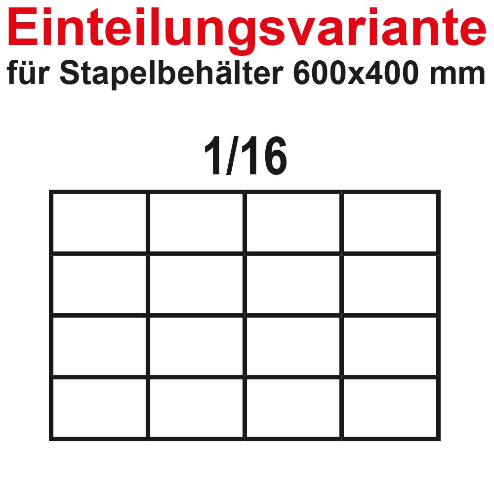Einsatzkasten für Stapelbehälter 600x400 mm, LxBxH 137x87x110 mm, Farbe grau