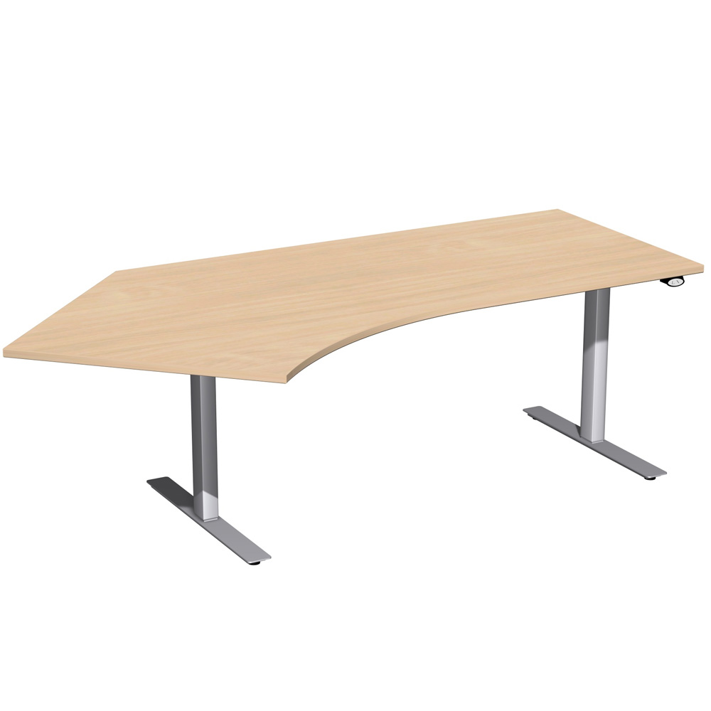 Steh- und Sitz-Arbeitsplatz, 135°, rechts "Basic", Dekor Buche, Gestell silber, BxTxH 2166x1130x650-1250 mm