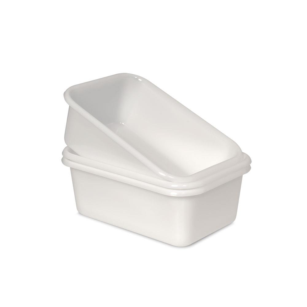 Beständig gegen die meisten Säuren und Laugen. Konische Form, leer platzsparend ineinander stellbar. Die Behälter sind kältebeständig bis -40ºC, hitzebeständig bis +60ºC. Spülmaschinenfest und für Lebensmittel geeignet. Besonders stabil durch umlaufenden oberen U-Rand. Material PE-HD.