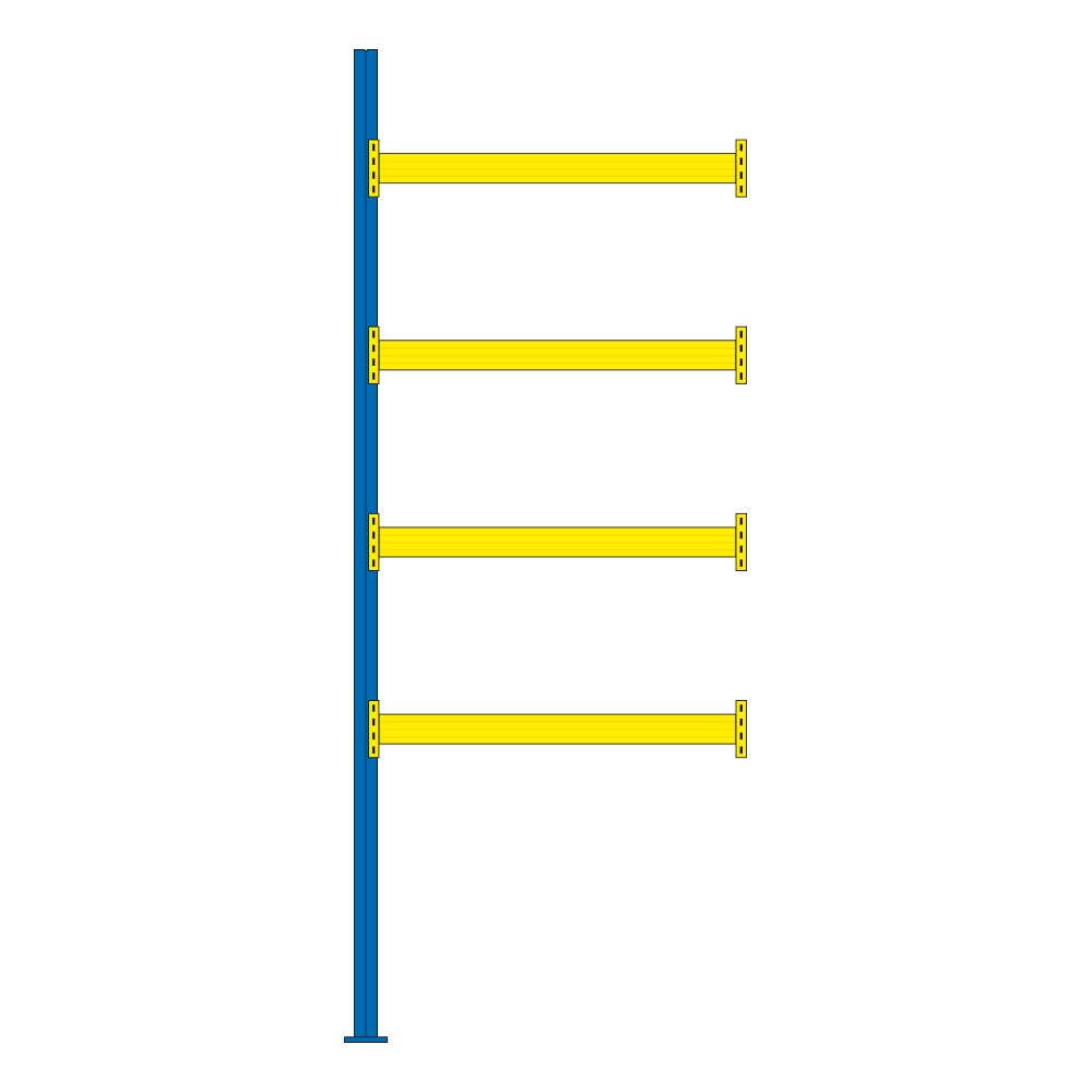 Praktische Großfachregale für Paletten, Gitterboxen und Behälter. Mit diesem Regalsystem steht Ihnen ein leistungsstarkes und praxisbewährtes Produkt zur Auswahl. Die Stützenprofile sind aus hochfestem Stahl geformt und erhalten durch ihre spezielle Profilierung eine sehr hohe Steifigkeit. Sie werden durch Diagonal- und Horizontalstreben zu einem Fachwerkrahmen verschraubt. Die Anlieferung bei Ihnen erfolgt zerlegt. Die steckbaren Tragbalken gewährleisten eine einfache und schnelle Montage und kurze Umbauzeiten. Sie sind auch nachträglich im Raster von 50 mm in der Höhe verstellbar. Das praxisgerechte Zubehör ermöglicht den betrieblichen Erfordernissen leicht anpaßbare Lösungen. Dieses Regalsystem ist mit allen Stapelgeräten bedienbar. Regalstützen blau RAL 5010, Fachwerk verzinkt, Tragbalken goldgelb RAL 1004 kunststoffbeschichtet.