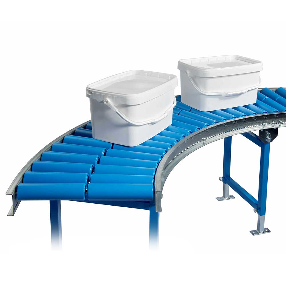 - Kurven werden im Zusammenhang mit der geraden Rollenbahn ohne zusätzliche Ständer aufgestellt