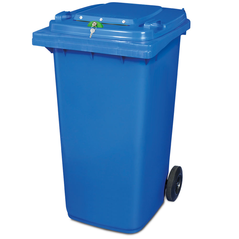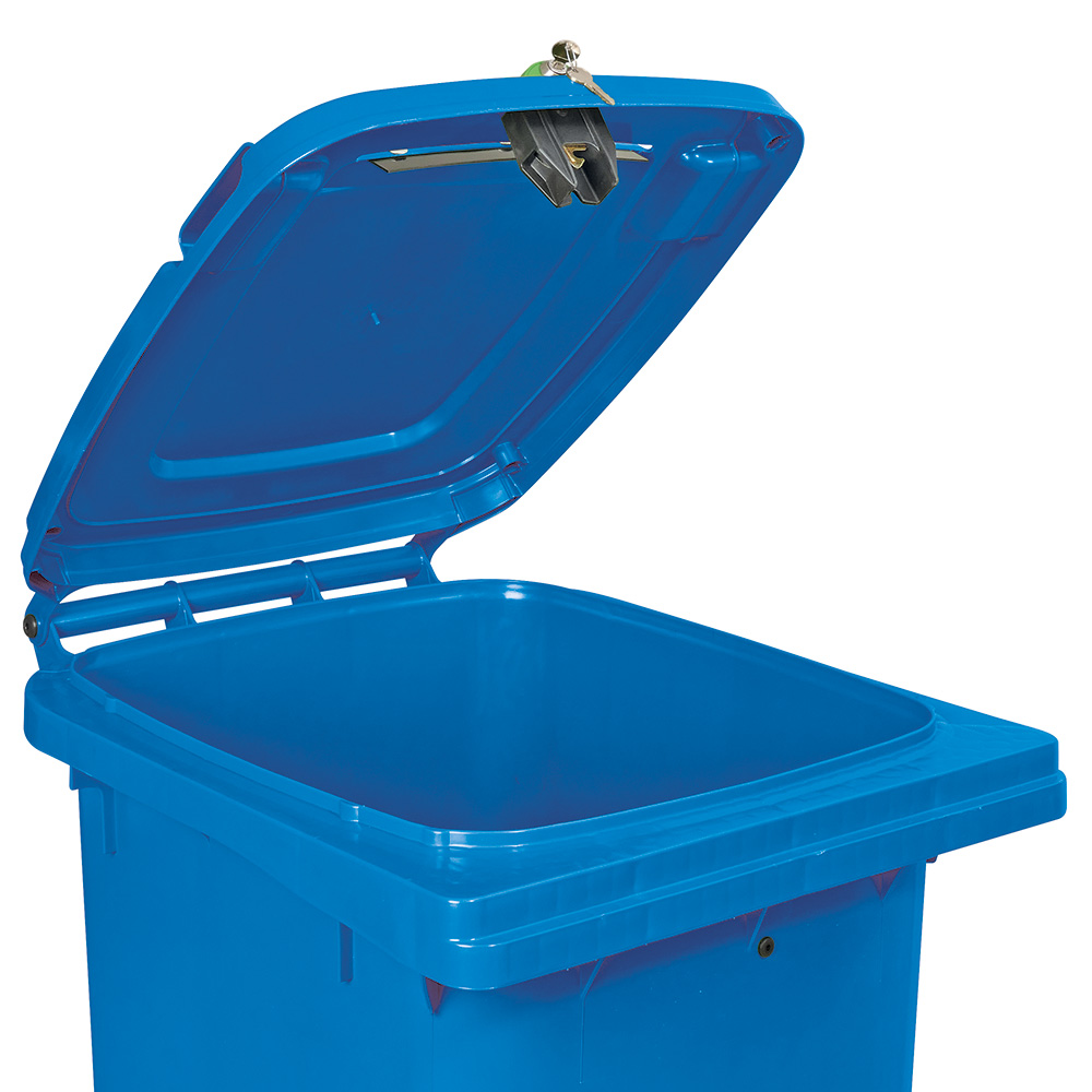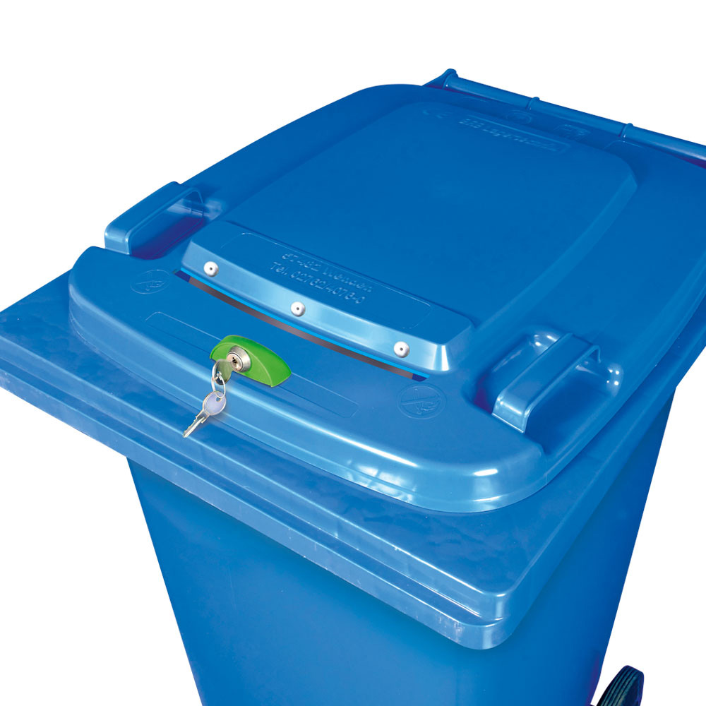 Müllbehälter mit Dokumenteneinwurf, abschließbar, BxTxH 580x740x1070 mm, 240 Liter, Farbe blau