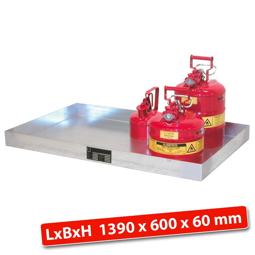 Kleingebindewanne, Volumen 40 Liter, Edelstahl, LxBxH 1390x600x60 mm, Gewicht 25 kg